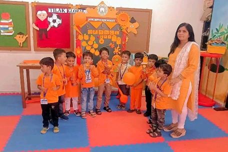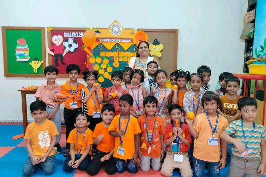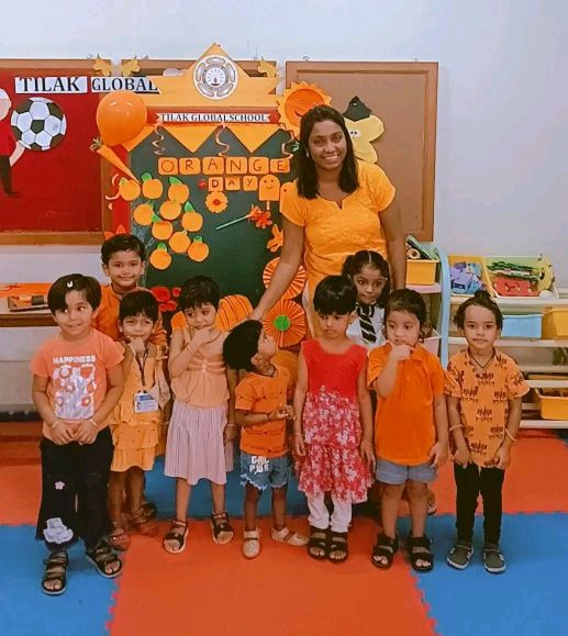 A "Pre-Primary Orange Day Celebration" is a fun, educational event where young children learn about the color orange through various activities. Teachers took the opportunity to engage the young minds in a visually stimulating experience, showcasing various orange colour objects within the classroom. Children enthusiastically engaged in paper crafts, paper tearing and pasting and show and tell activities.