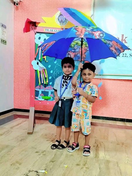 At Tilak Global School, students of pre-primary recently embraced the monsoon with raincoats and umbrellas.