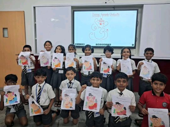 The primary students mesmerized the audience with a beautiful dance performance to the hymn "Shree Ganesha Deva".The event was a perfect blend of spirituality, culture, and fun, making it a memorable experience for all.